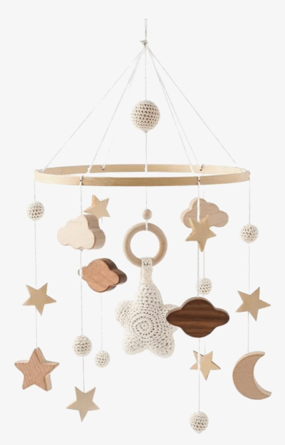 Met deze stijlvolle babymobiel heb je een onvergetelijk babyshower cadeau in handen. Ons unieke babymobiel is versierd met de mooiste materialen waar elk kindje uren naar kan turen.