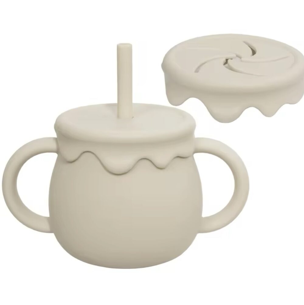 Onze siliconen 3-in-1 multifunctionele drinkbeker is namelijk veelzijdig te gebruiken; namelijk met rietje, zonder rietje en als snack beker. De bijgeleverde snackdeksel maakt het gemakkelijk om tussendoortjes mee te nemen zonder gedoe. De snackdeksel is voorzien van een opening die alleen open gaat als je er in gaat graaien, dit zorgt ervoor dat de snacks er zelf niet uit kunnen vallen. Het is gemaakt van duurzaam en kindvriendelijk siliconen, wat het veilig maakt in gebruik voor kinderen. De drinkbeker is niet alleen maar handig en praktisch, maar ook leuk in gebruik. Tevens zijn ze anti breekbaar en gemakkelijk schoon te maken.