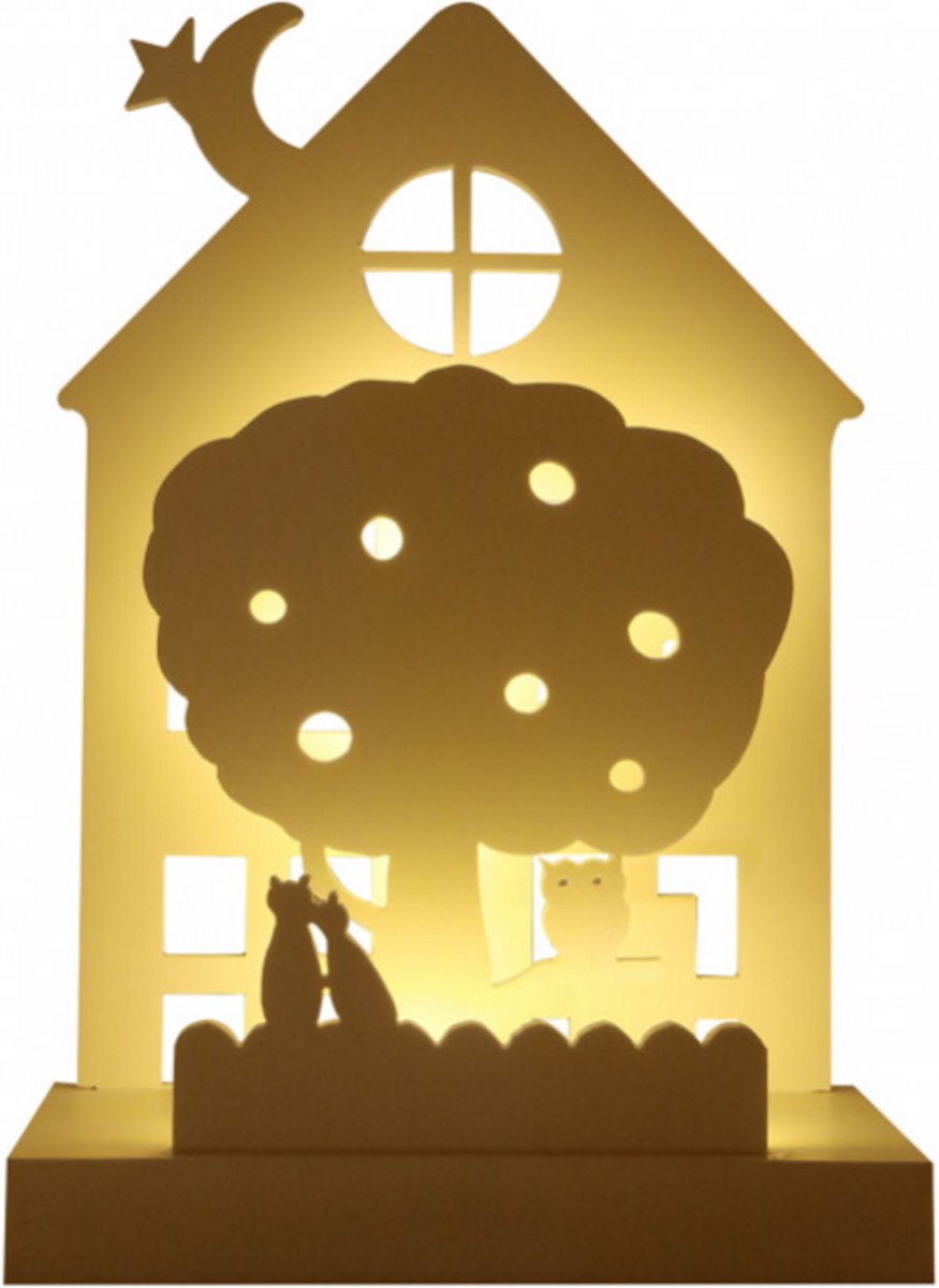 Houten Huisje Dieren Nachtlamp