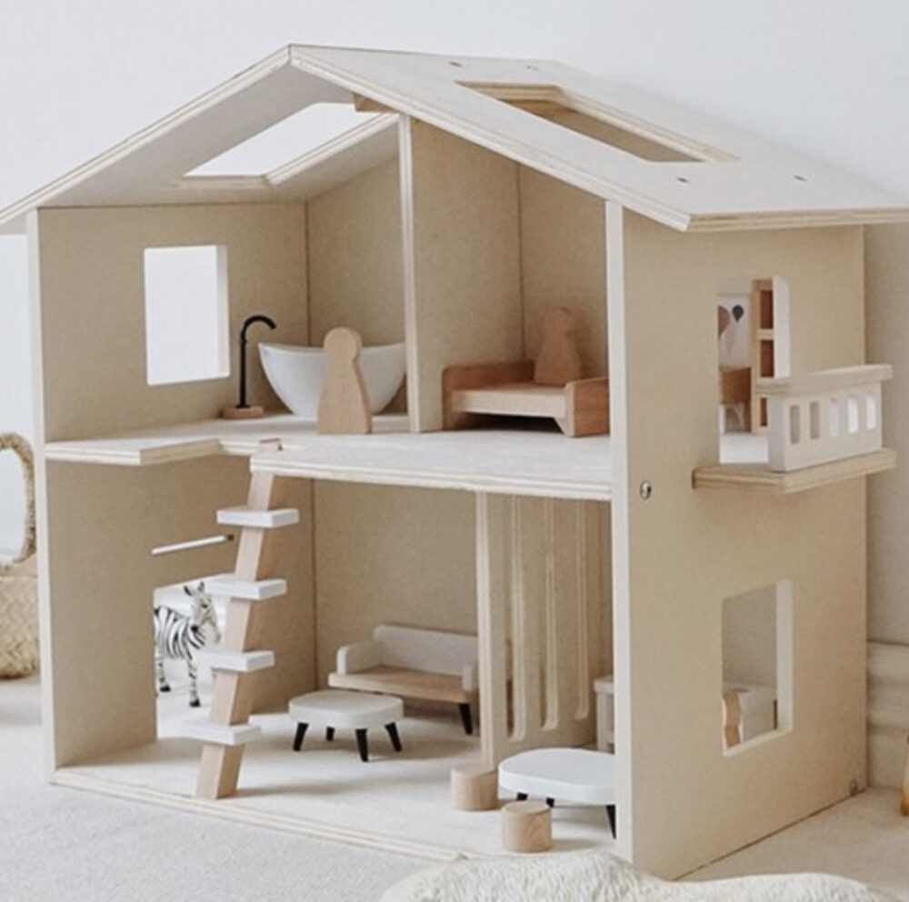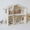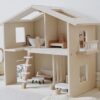 Dit poppenhuis is niet alleen leuk om mee te spelen, maar het is ook een stijlvolle toevoeging aan elke kinderkamer. Het natuurlijke houten ontwerp past goed bij verschillende interieurstijlen en creëert een warme, uitnodigende sfeer.