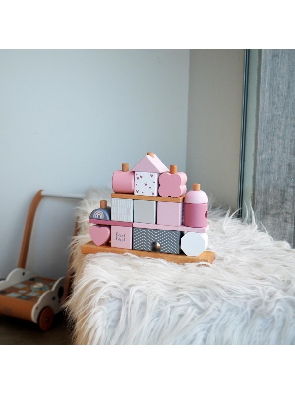 Deze stapelblokjes van Label Label zijn vervaardigd uit kwaliteitsvol FSC gecertificeerd beukenhout en werden voorzien van prachtige roze/wit/grijze tinten met behulp van kindvriendelijke verf op waterbasis.